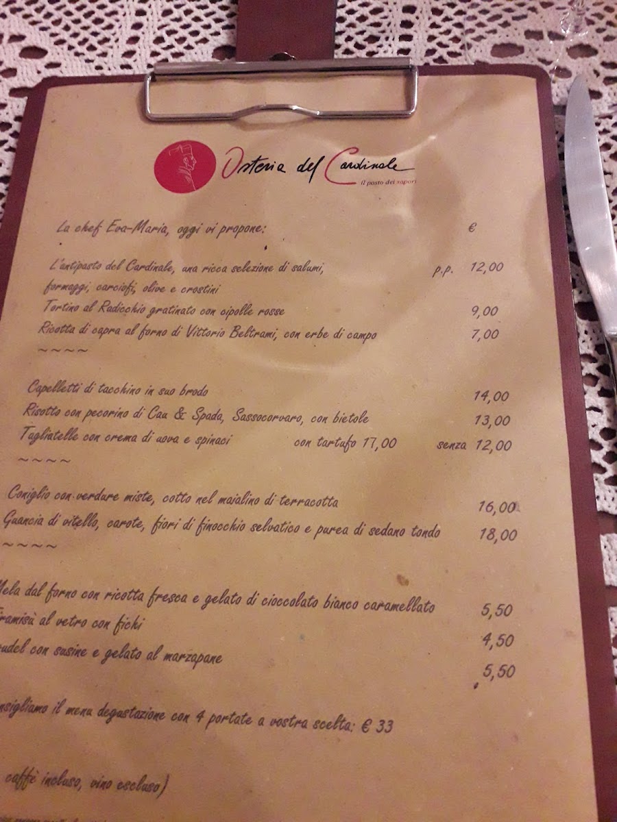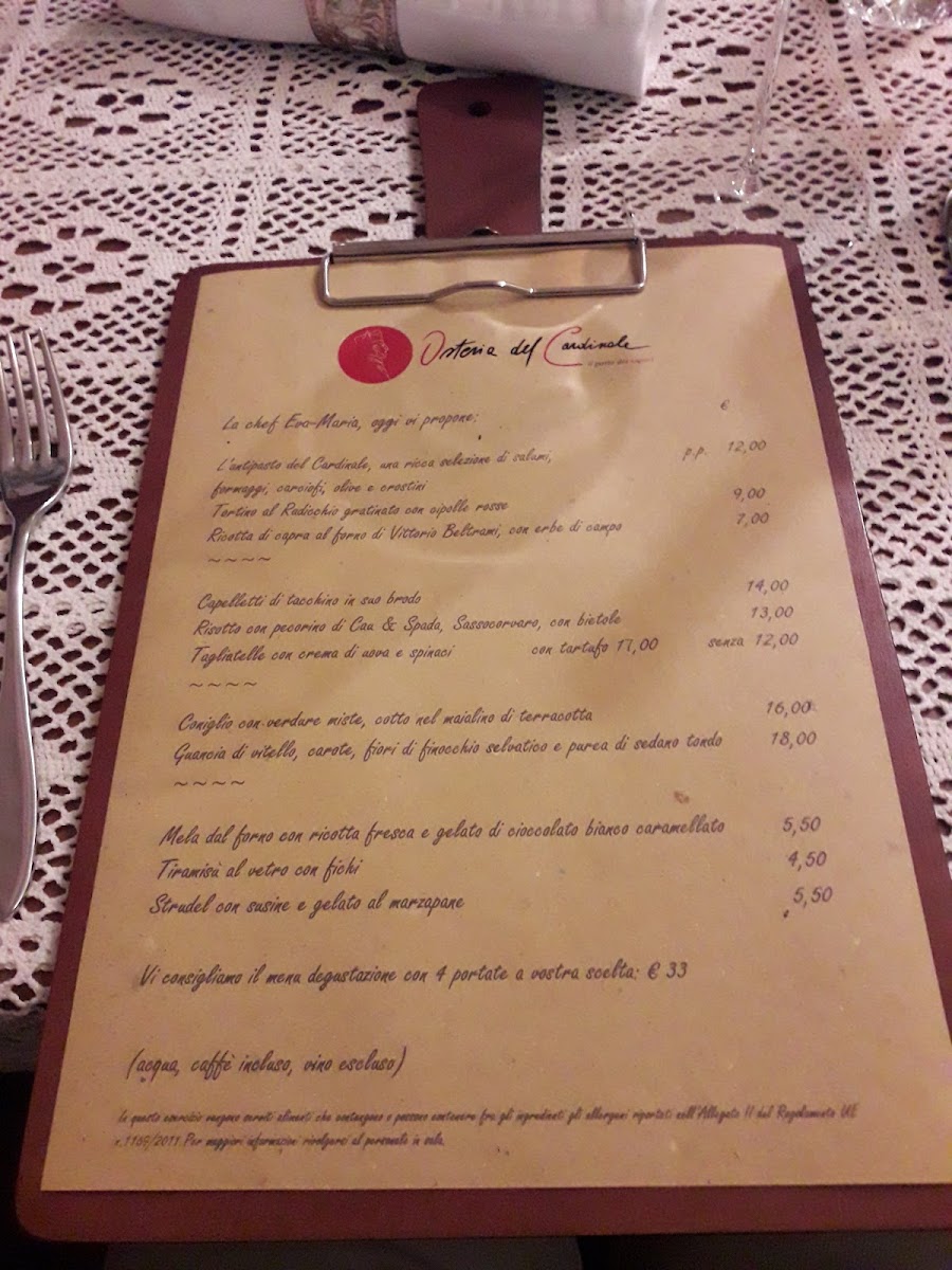 Osteria Del Cardinale offers a charming selection of traditional Italian dishes, with an emphasis on fresh, local ingredients. Among the standout offerings, Risotto Al Pomodoro shines with its rich tomato-based flavor, a true testament to the restaurant's commitment to simplicity and quality. The menu also highlights a variety of hearty pastas and classic meat dishes, each prepared with meticulous attention to detail. From the first bite to the last, it’s clear that Osteria Del Cardinale embraces authentic Italian cooking, creating an inviting atmosphere where every dish feels like a celebration of Italy’s culinary heritage. Whether you're indulging in a comforting plate of risotto or savoring the tender meats, the restaurant’s menu delivers an experience that's both satisfying and memorable.